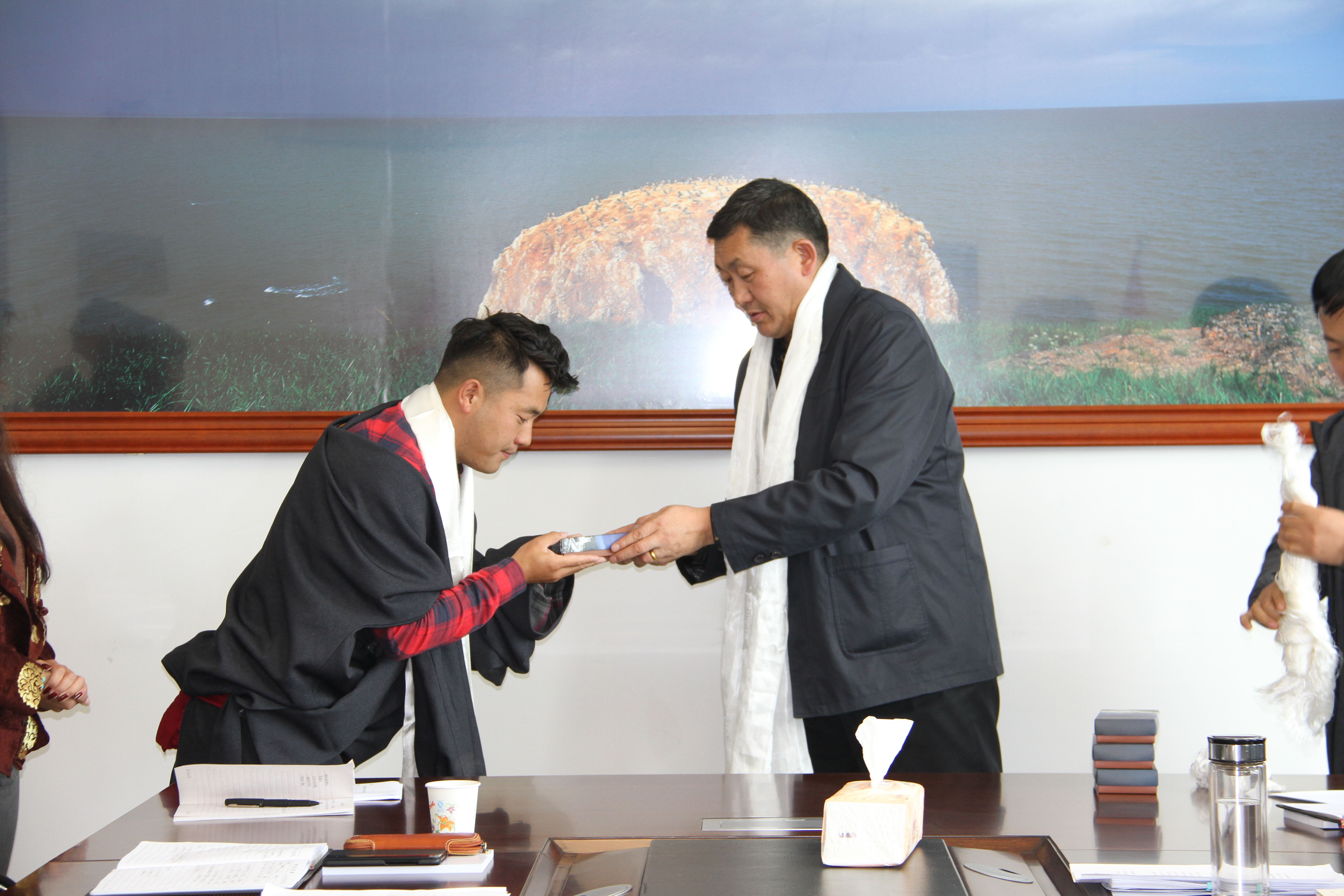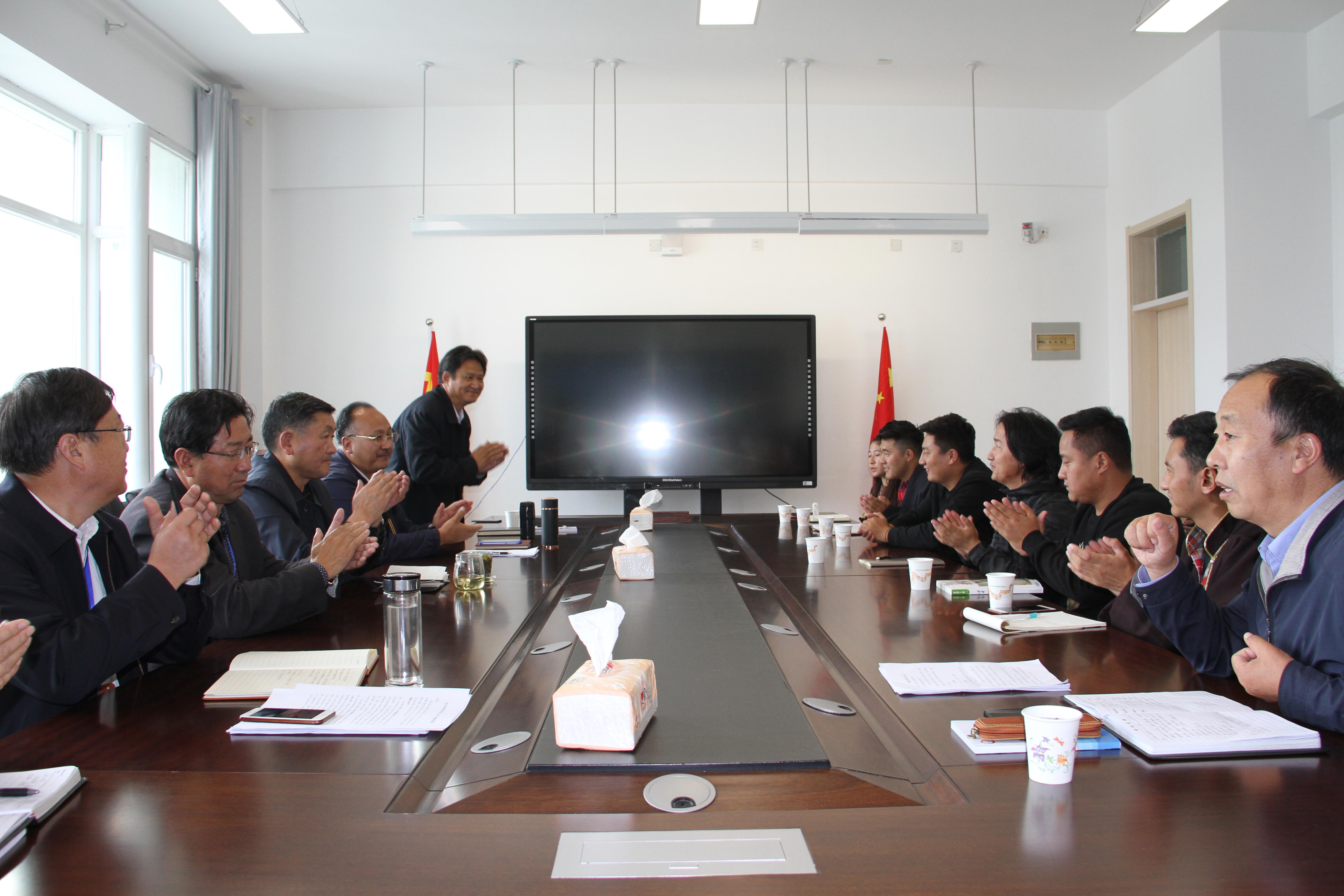 会后,院领导及进修学员在班禅研究院合影,并观看公司宣传片。