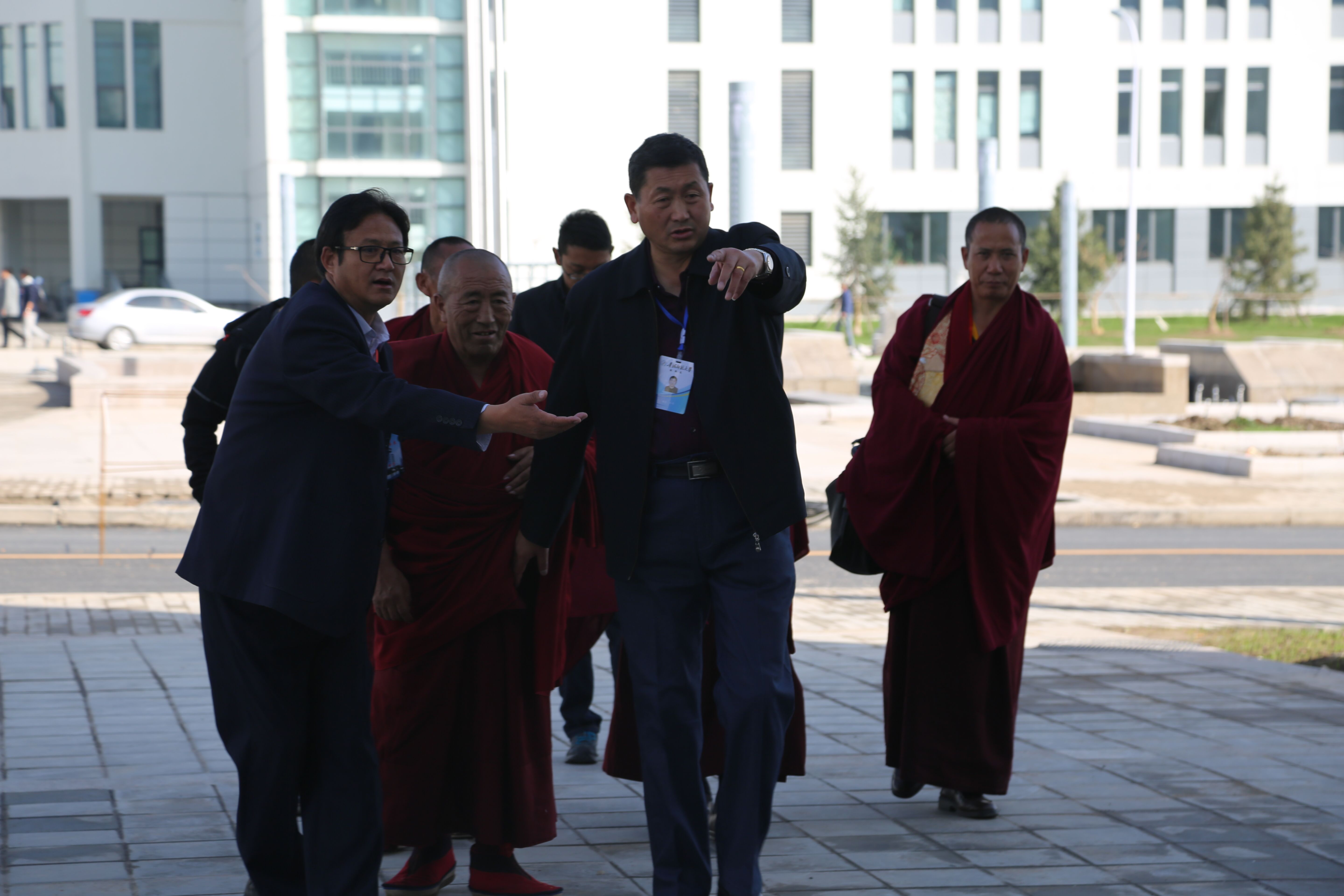 10月23日下午,风和日丽,西藏自治区政协副主席、西藏扎什伦布寺寺管会主任萨龙•平拉先生一行7人莅临公司新校区班禅研究院指导工作。