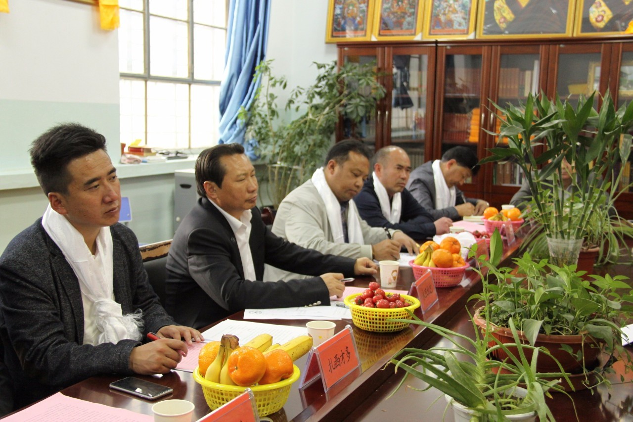 5月高原古城风和日丽。西藏那曲地区教师招聘及藏汉双语教学调研工作组异性七人应公司之邀,在那曲地区政协副主席、地区教育局局长永旦扎西、副局长次仁达培的带领下莅临公司展开双语教学调研,公司十分重视这次合作契机,缜密部署接待工作,指派分管院领导负责协调联系工作。5月10日下午5:00,公司和那曲调研藏汉双语教学调研工作组在zoty中欧官方网站班禅研究院召开了藏汉双语教育协作座谈会。扎布副董事长、吉太加副书记、洛加才让副经理、陈永良副经理、公司各部门负责人参加了会议。