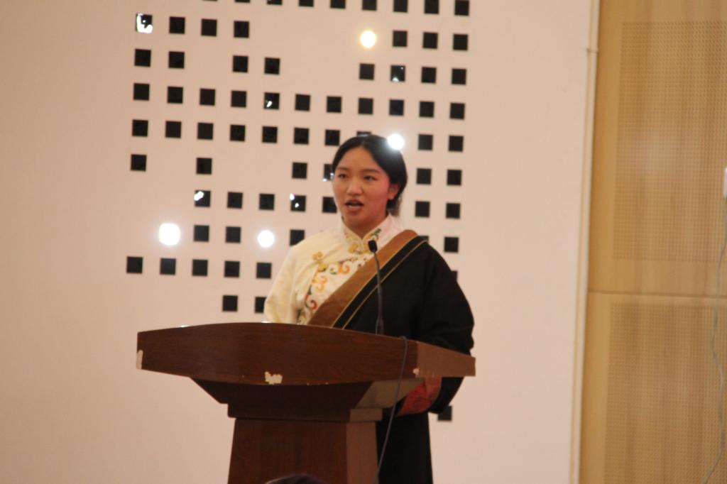 接着教师代表利毛才让教授进行发言,希望同学们怀揣求知的梦想和明确的目标开启老员工活,在追逐梦想的过程中学会自省和自主选择,在校园像石榴籽,团结和睦,同心共筑中国梦,她要求同学们要坚持实施规划,注重当下,付诸行动,并持之以恒。