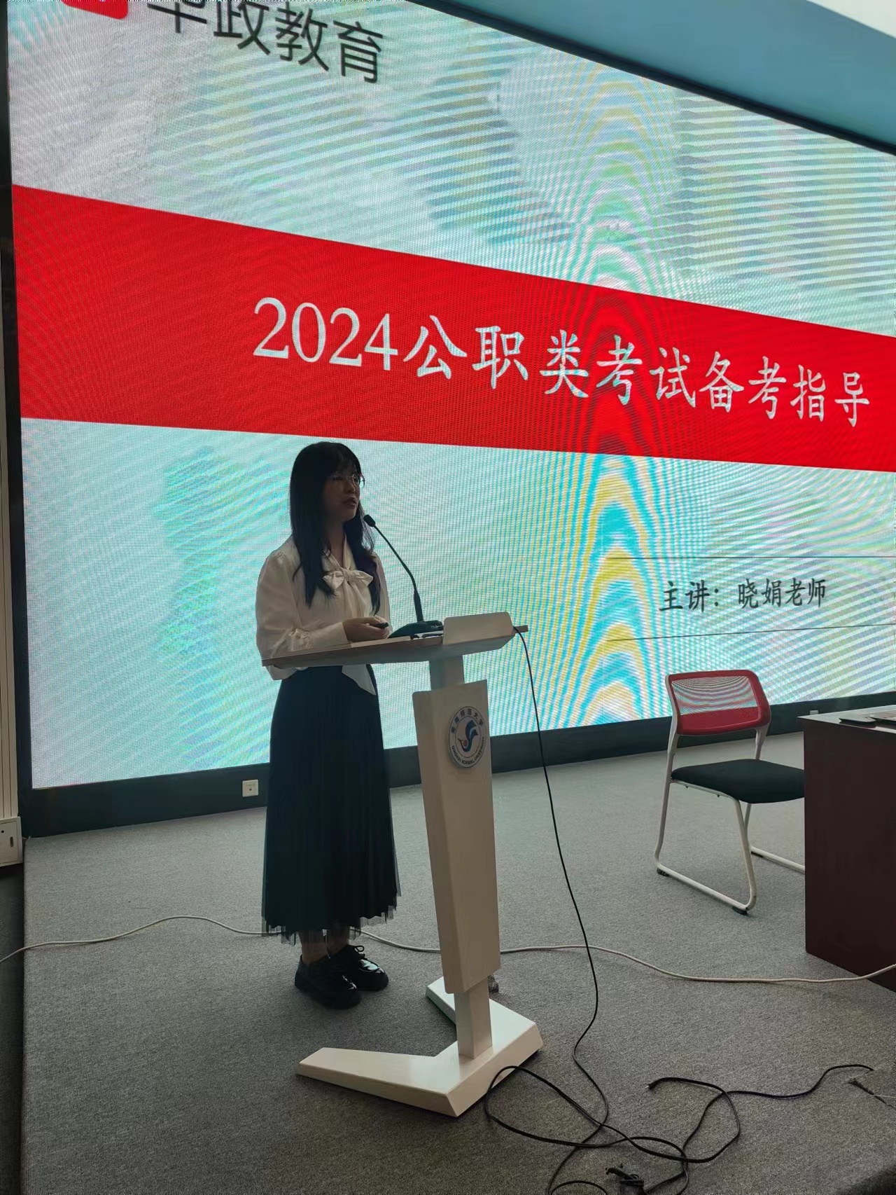 为帮助2024届毕业生了解报考公务员的选岗及复习备考技巧,制定合理的职业规划,zoty中欧于10月10日下午14点10分在报告厅邀请华政教育举办公务员考试专题讲座。来自zoty中欧全体大四员工及院员工管理处工作人员、辅导员、班主任参加了活动。