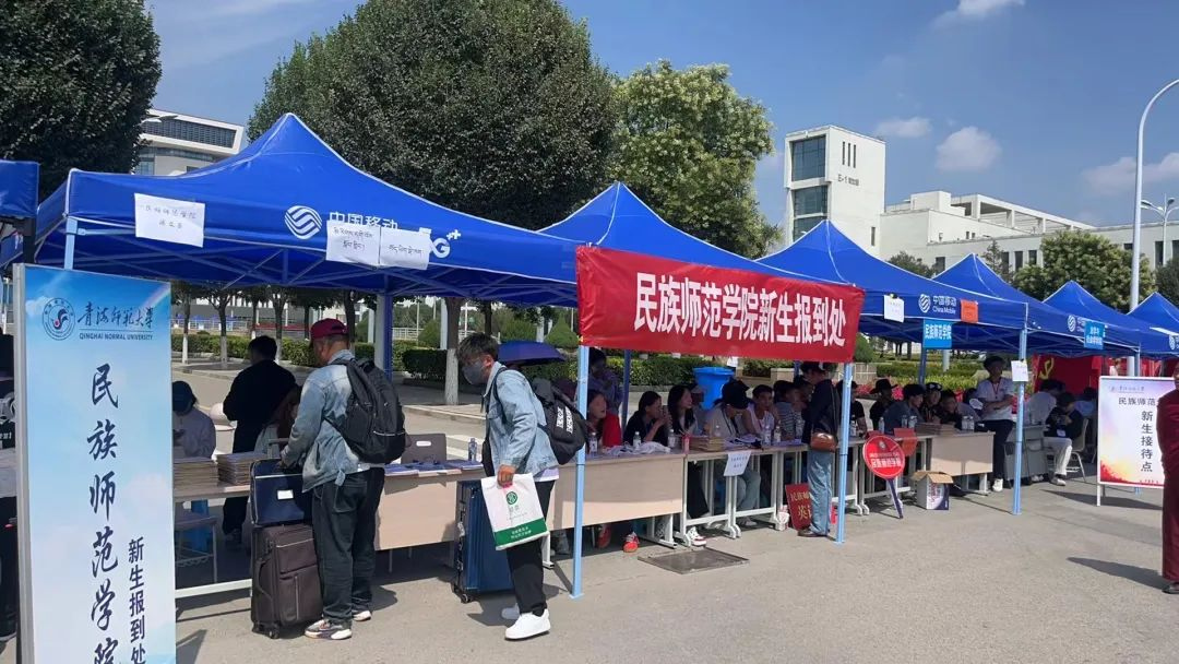 学长学姐们在校门口进行迎接,将新生带到报到点,共设有:校门口迎新点,新生报到处,家长休息区,大活中心迎新点,宿舍迎新点共计五处。志愿者与员工会为新生提供全方位的帮助与服务。引导新生完成报到手续、搬运行李物品等,并热心地为家长提供茶水。