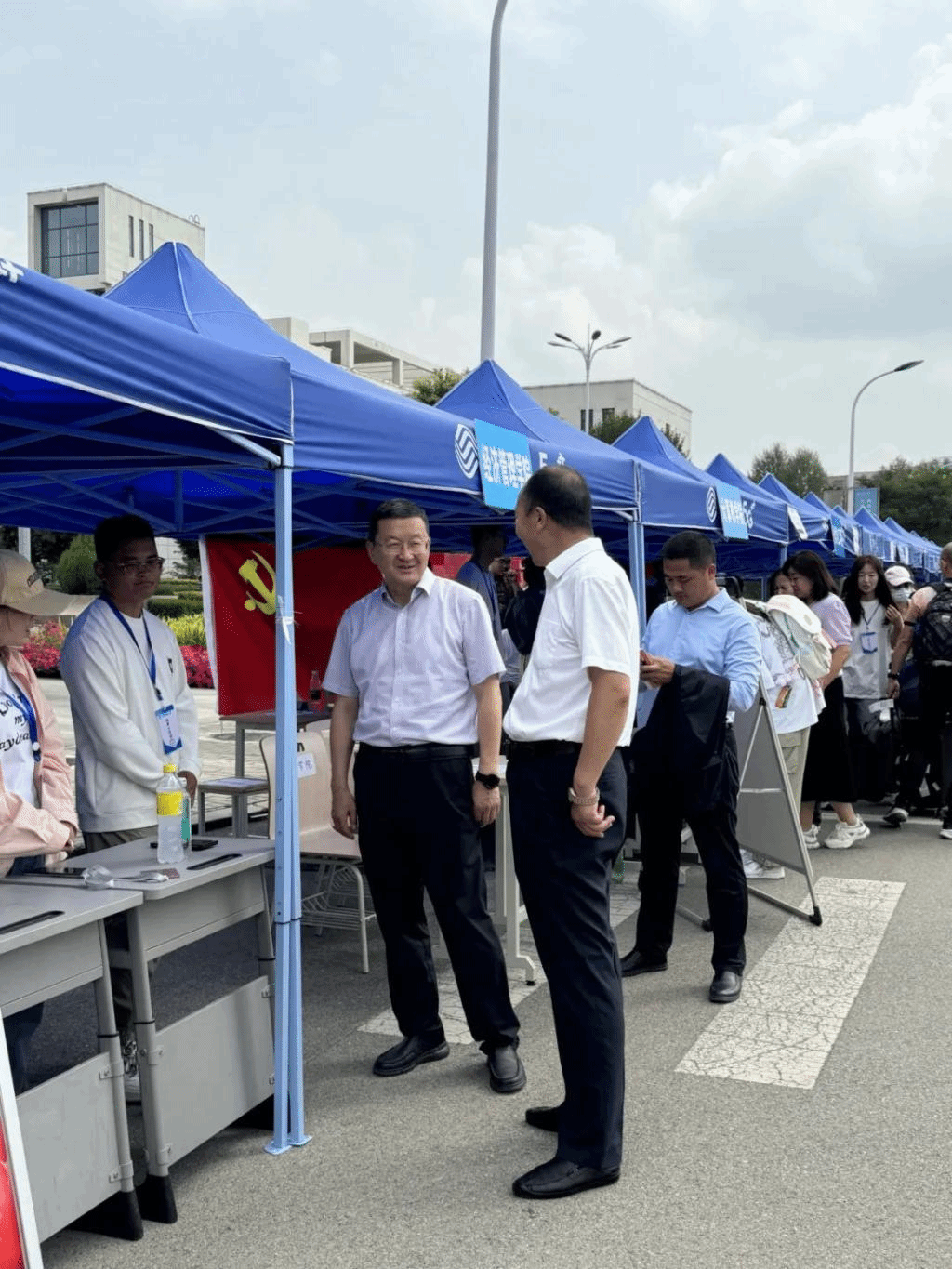 公司各系主任、老师、班主任、辅导员都来到了现场,热心地解答新生和家长们的问题,耐心地引导员工完成报到手续。 随后校领导与院领导们深入迎新工作现场,了解迎新进展。走访慰问现场师生和志愿者,实时关注新生入学动态。